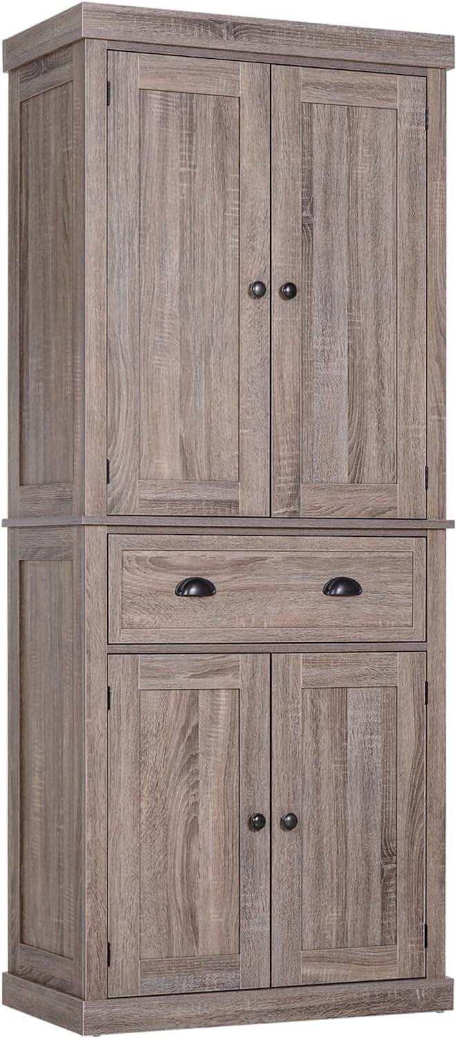 - Versatile Storage Solution: Features a single center drawer with both the upper and lower doors opening to 1 fixed and 2 fully adjustable shelves, the pantry organizer allows for flexible storage space that fits your individual needs.