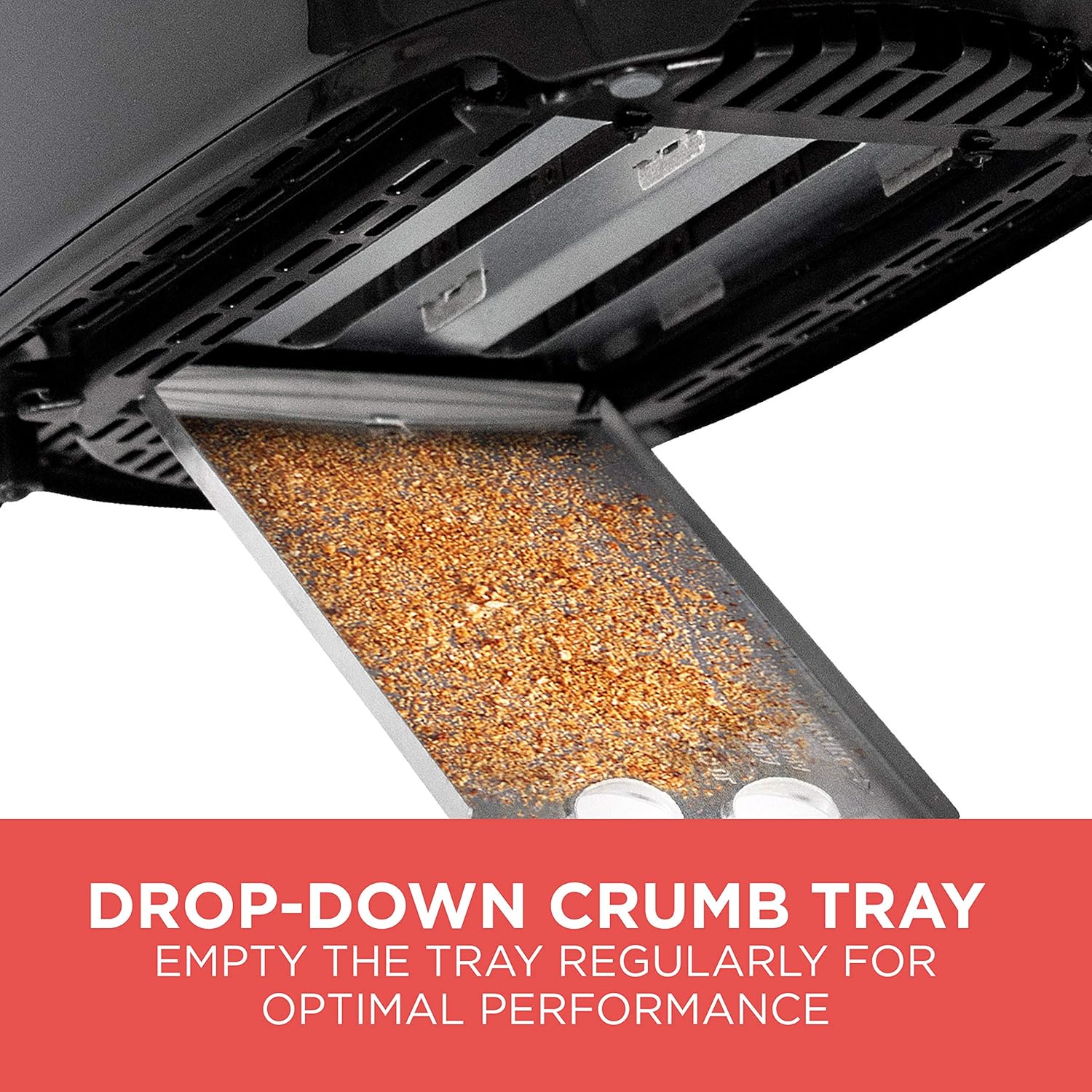 - DROP-DOWN CRUMB TRAY: Keep the counter clean and the kitchen smelling fresh. The crumb tray lets you remove crumbs before they burn or mess up your kitchen.