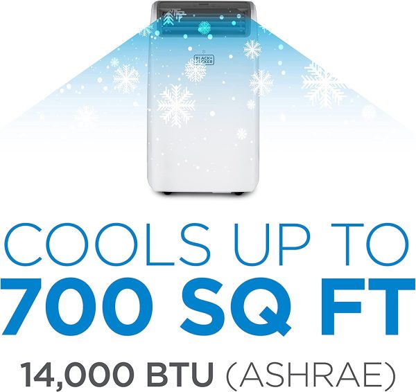 - Portable AC: Use this personal air conditioner (16.5” x 14.06” x 27.09”) in rooms up to 700 sq. ft. Stay cool in the hot summer months and sleep well with this B+D ac unit for bedroom.