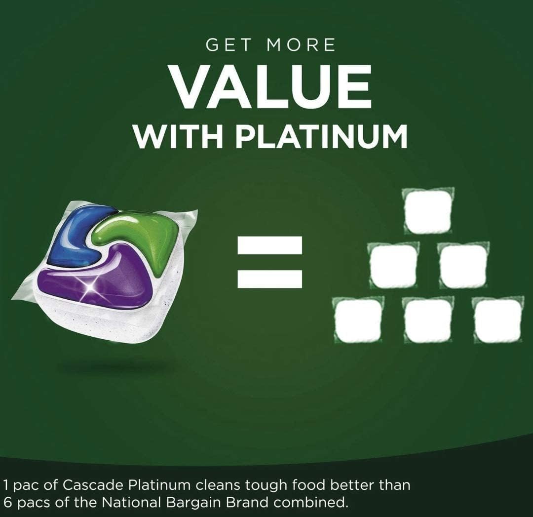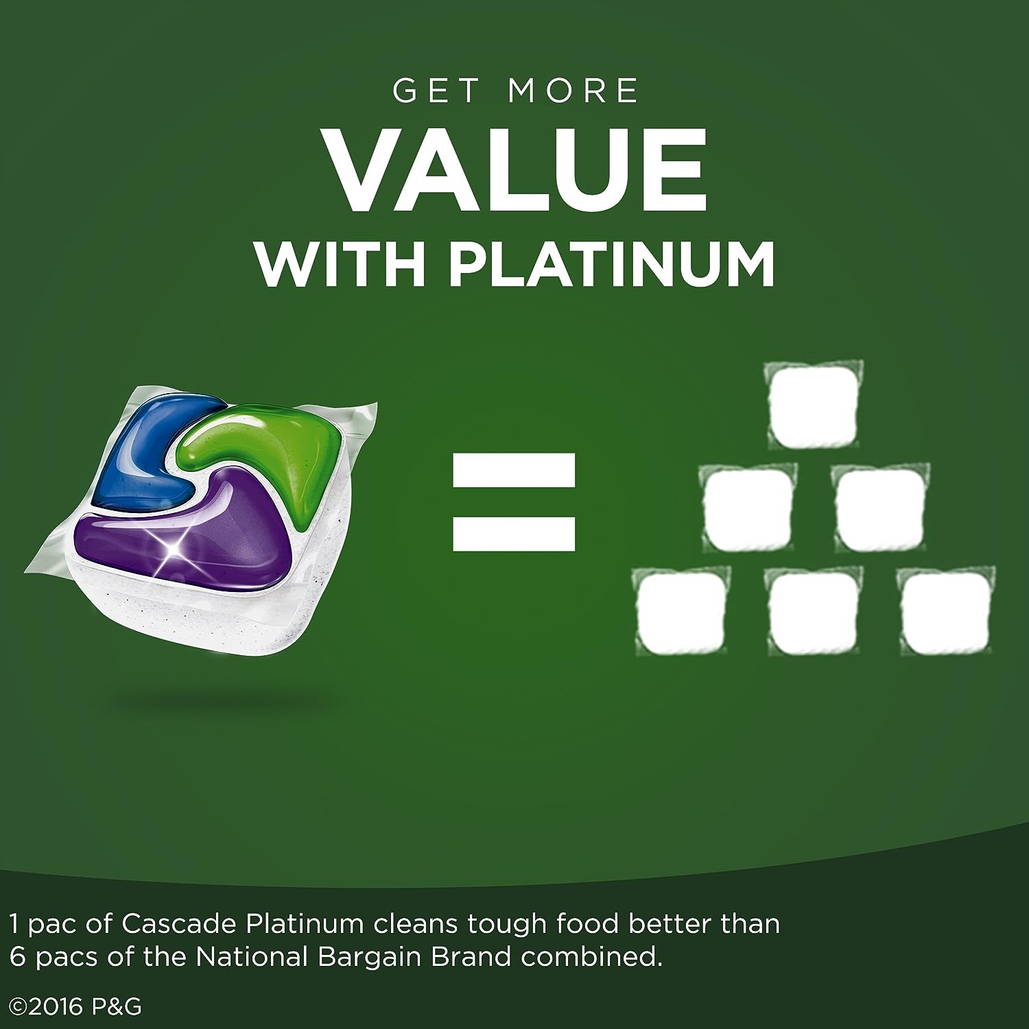 • Cascade Platinum Dishwasher Pods, Dishwasher Detergent, Dishwasher Pod, Dishwasher Soap Pod, Actionpacs Dish Washing Pod, Lemon, 62 Count Dishwasher Detergent Pods