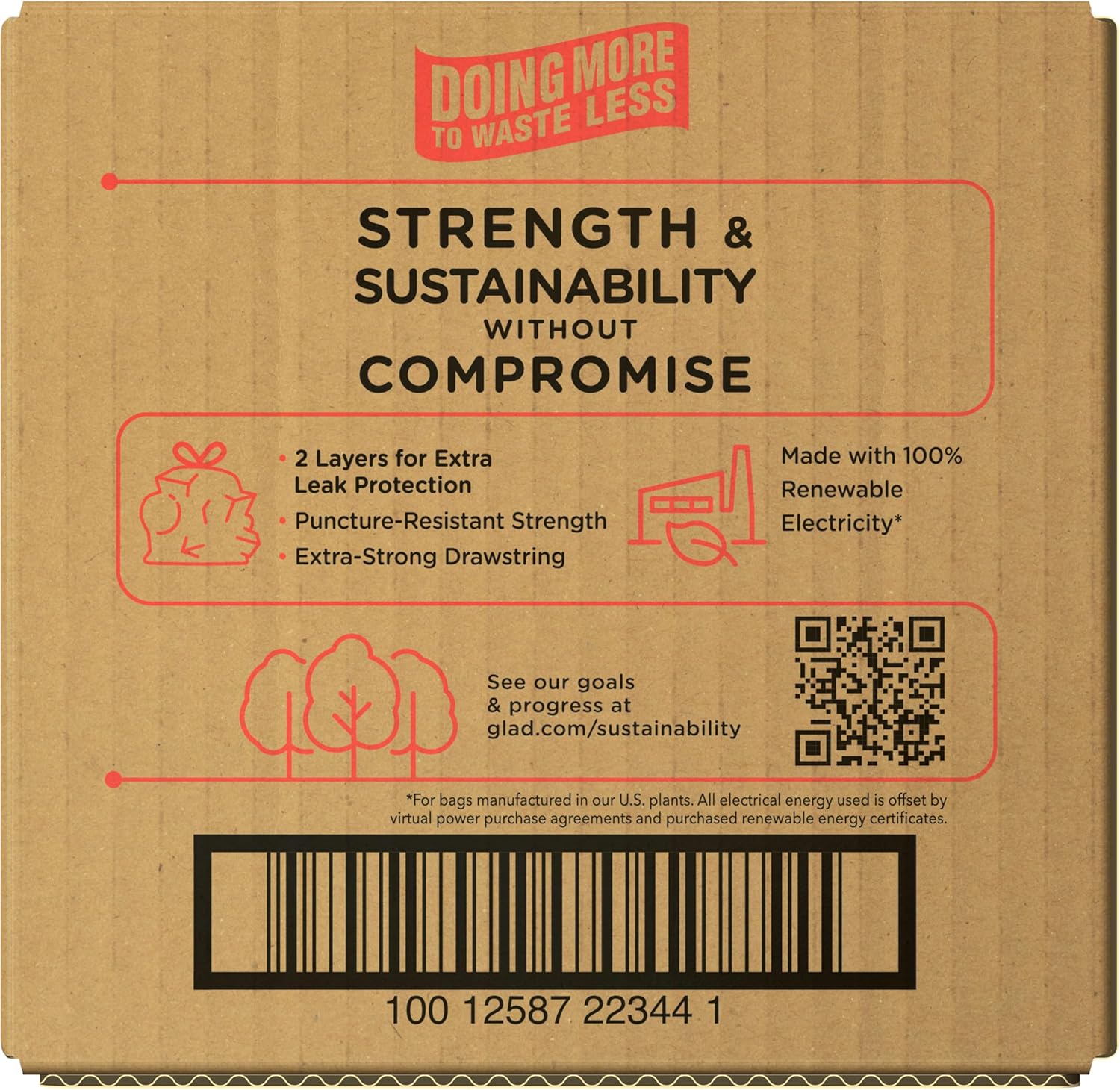 Dual Defense trash bags provide two layers of GLAD strength, brought together with our durable drawstring. Even the fullest bags can be closed with one cinch, and the wide reinforced straps make lifting and carrying simple and secure.