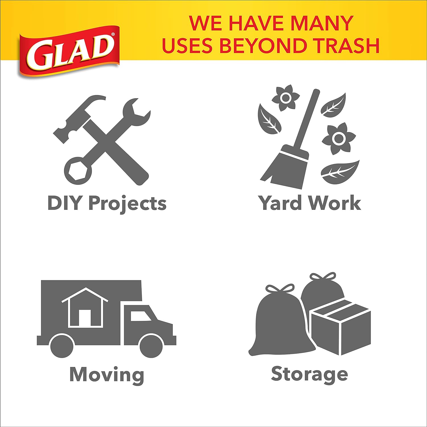 - FORCEFLEX TRASH BAGS: Glad’s trusted ForceFlex technology allows the garbage bag to stretch and expand over heavy loads with sharp edges, delivering durable strength; packaging may vary