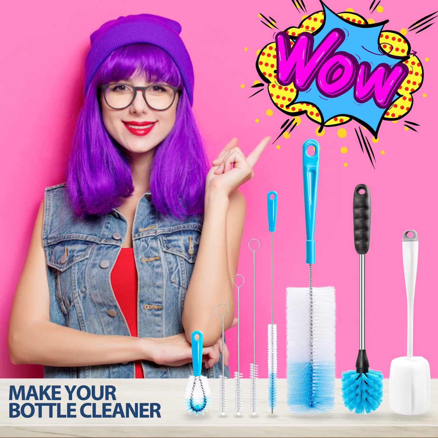 - ���8 Pack Bottle Cleaning Brushes, multiple uses, including 15" long handle beer bottle brush, 14" sports water bottle brush, 10" multifunction sponge brush, 4.3" spout cleaning brush, 7.9-12.5" straw brushes. You can hang them on hook for drying and storage.