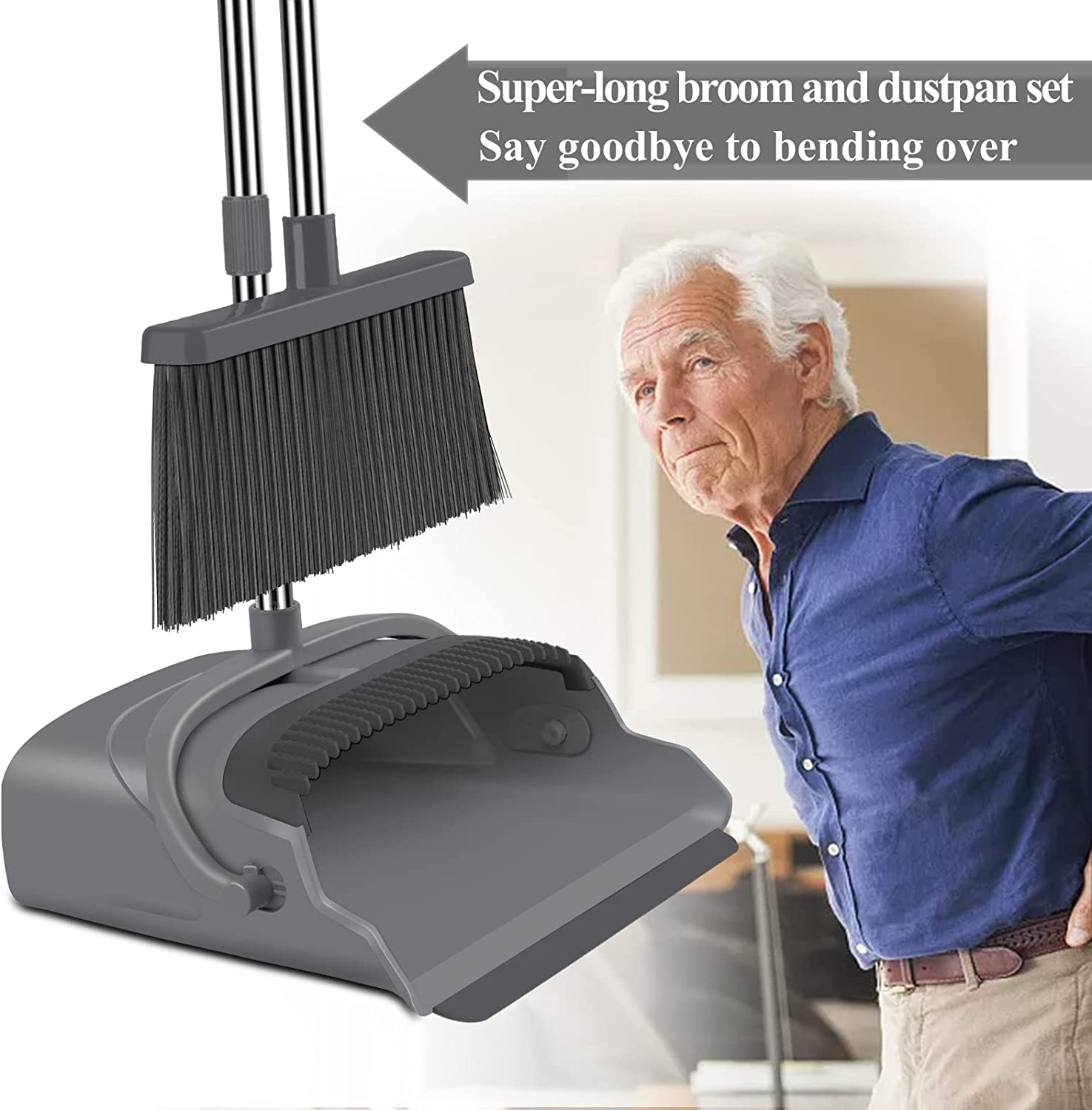 • Upgrade Broom and Dustpan Set, Self-Cleaning with Dustpan Teeth, Ideal for Dog Cat Pets Home Use, Super Long Handle Upright Stand Up Broom and Dustpan Set (Gray&Orange)