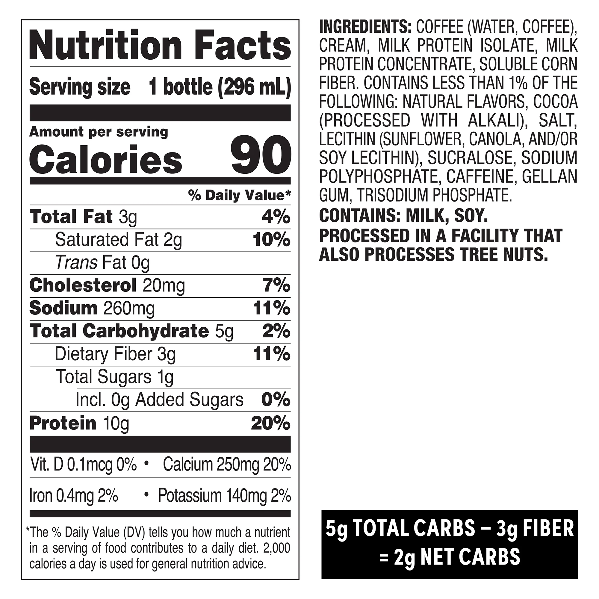 *See Nutrition Facts for Calories Content. Low Sugar: 1g Sugar, Including 0g Added Sugars per serving. Not a low-calorie food. ��Caffeine content comparable to two standard 8 fl. oz cups of coffee