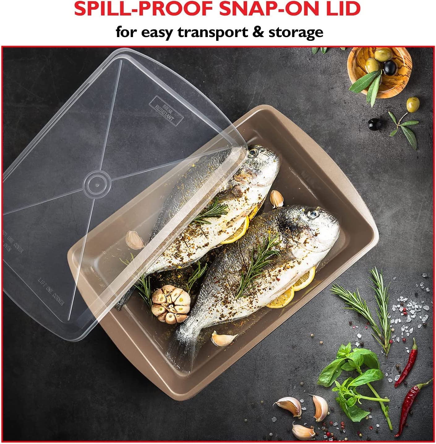 - OVEN SAFE PERFORMANCE: Designed to perform our bakeware set is oven safe up to 450F. which is enough to cover you for the tastiest baking goods. Delicious chocolate fudge, cookies, cupcake, apple pie, brownies, birthday cake, and much more are a breeze with our bakeware set and added silicone spatula set.