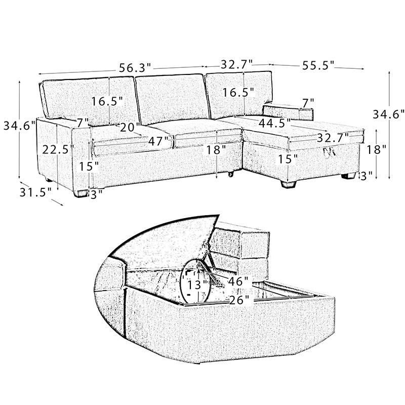 Whether you're entertaining guests or having family stay for a weekend, this Sleeper Sectional with pull-out bed and compartment lets you do both. Soft fabric upholstery on a hardwood frame with overstuffed back cushions and foam seat cushion. The more you sit in This sectional sofa couch the better. The bright and colorful finish will blend with most color palettes. Expecting overnight guests? This sofa easily converts to a pull-out sleeper, while the chaise features hidden storage.