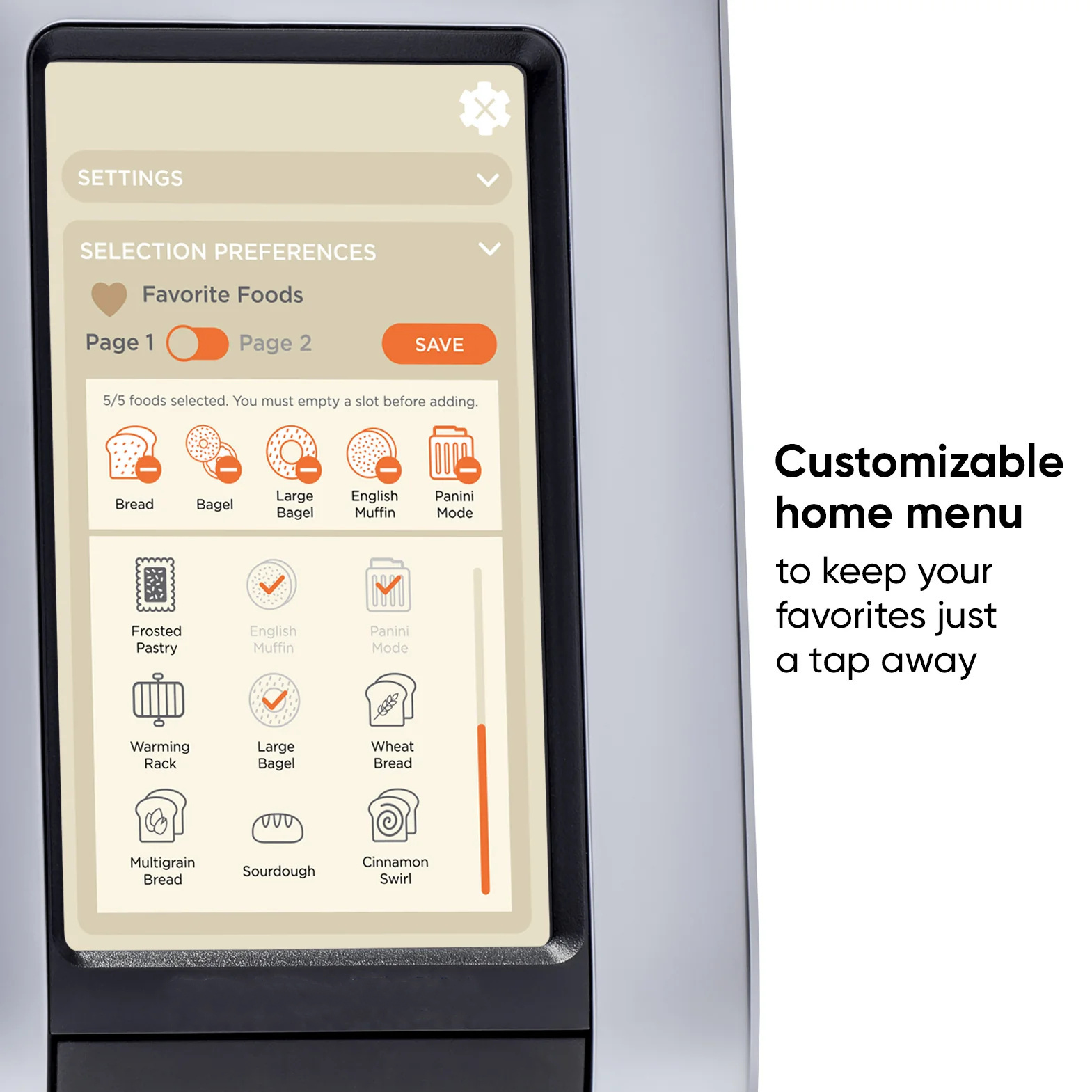 The ultimate toasting experience, with custom settings for 34 bread types and a personalized home menu to keep your favorites just a tap away.