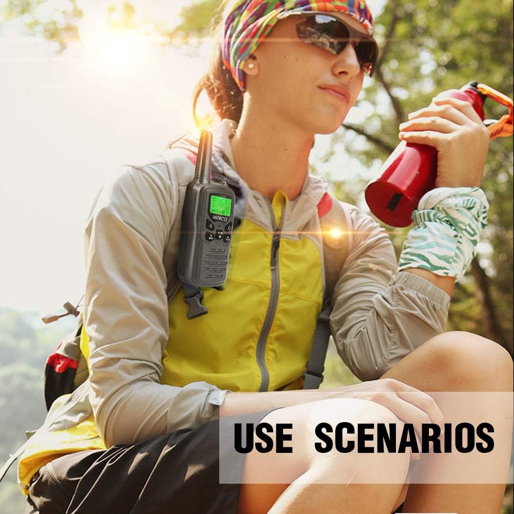 - ��Back-lit LCD Screen and LED flashlight��This walkie talkies has bold green back-lit LCD screen provides high visibility in night. Built-in LED torch can be used as both flash and emergency light.Small size and light weight, Hard and durable shell, drop-proof.MOICO walkie talkie let you and your family enjoy games or outdoor adventures.