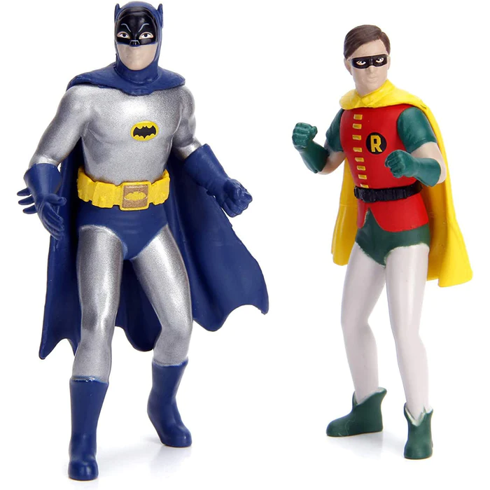 Characteristics: Featuring a high quality die-cast metal body, rubber tires, and light-up features, this 1:18 scale vehicle is a detailed and accurate replica of the iconic Batmobile from the 1966 Batman TV show! Also includes die-cast Batman and Robin figurines. Door, hood and trunk open, and headlights, taillights and siren light up. Collector box packaging.