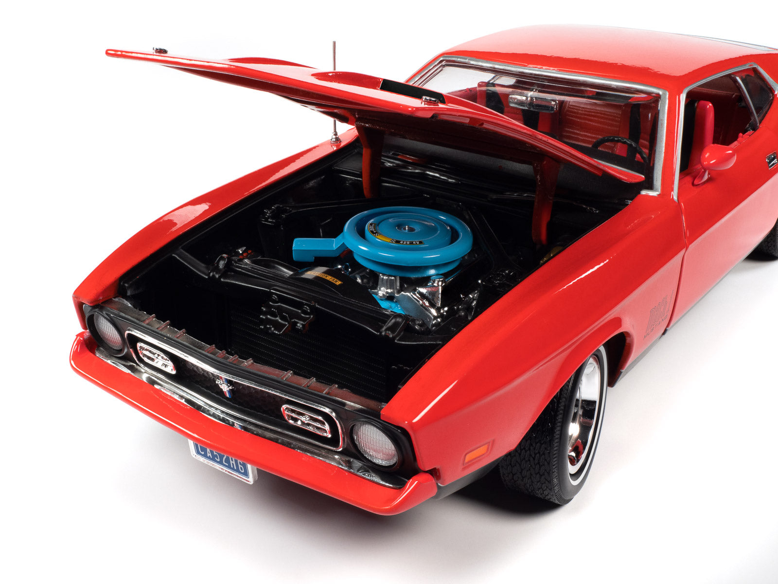 Auto World is proud to recreate this bright red 1971 Ford Mustang Mach 1 that belonged to character Tiffany Case in the 1971 film Diamonds Are Forever. Bond was famously chased through the streets of Las Vegas and escaped by tipping her car on two wheels and sliding through an alley. This 1:18 die-cast is exacting in all details and captures the excitement of James Bond driving an American performance car; Ford’s flagship and defending champion of all pony cars.