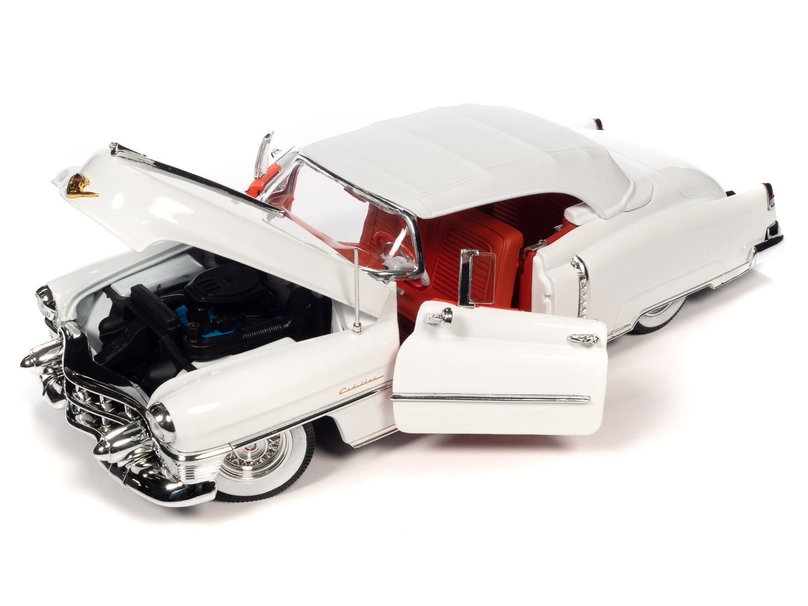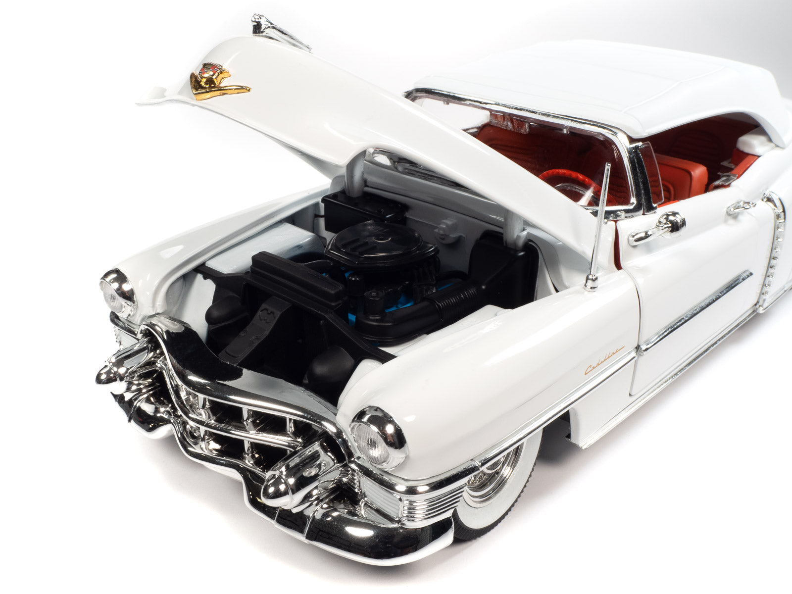 Auto World has replicated this rolling work of art in factory-matched Alpine White, wire wheels, and enough chrome for two vehicles! We’ve even replicated the white soft top in the “up” position. Under the hood is the highly-detailed 331ci V8 with 4-speed transmission..