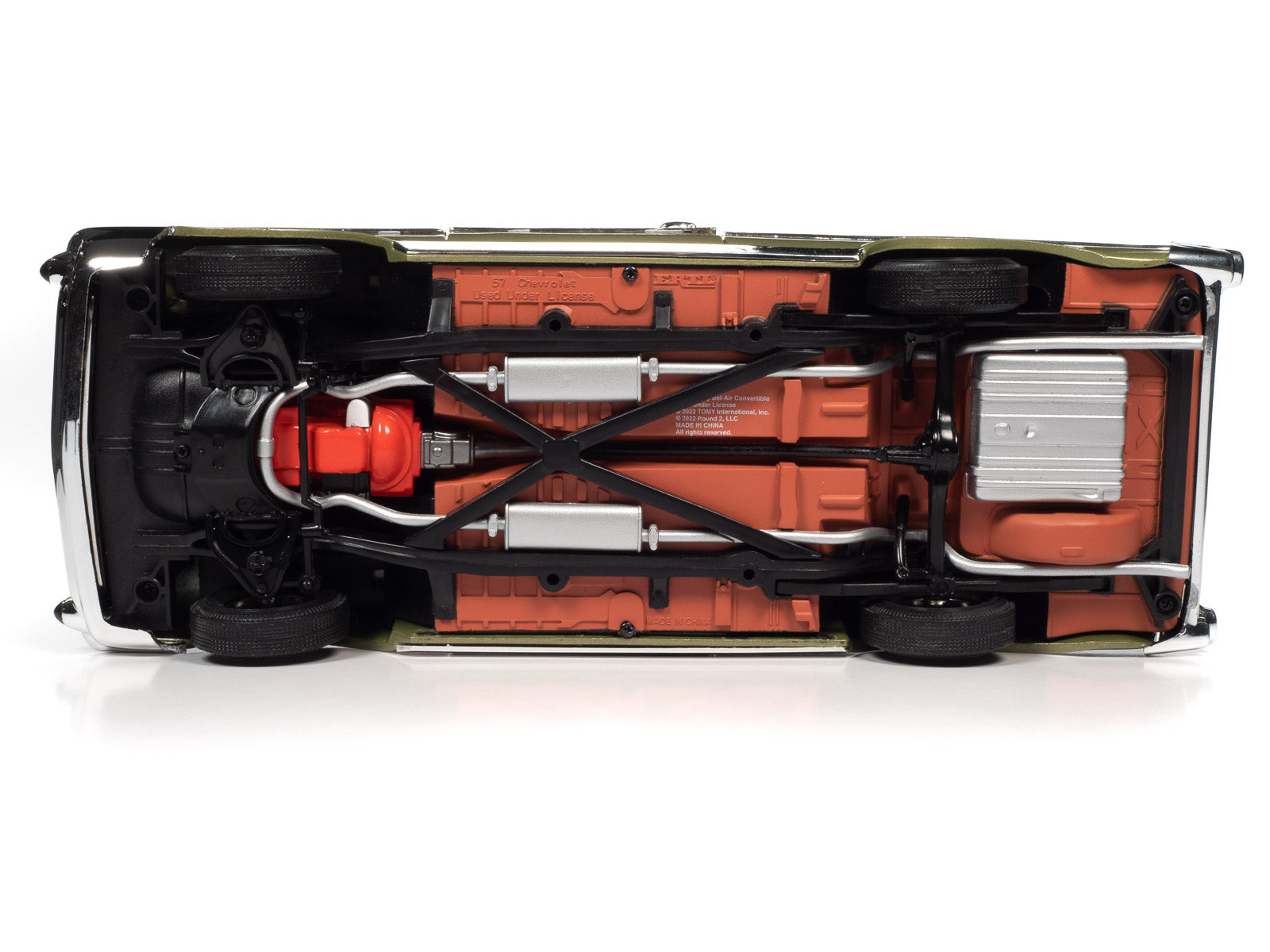 Auto World has replicated this beautiful 1957 Chevy Bel Air convertible “fuelie” in bold Laurel Green paint with striking white and silver interior.