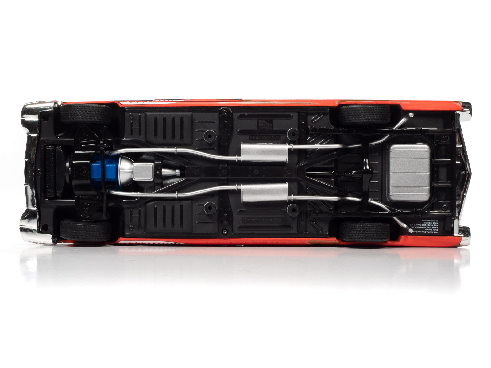 Replicated in Auto World die-cast to match the AMT box art, this rat-rodded lifeguard rescue ambulance features sun-faded paint, iconic tailfins from the 1959 Cadillac Eldorado, and period correct “baby moon” hubcaps and emergency flashers. On the roof, the retro-styled roof brackets hold a classic longboard and a mid-sized hybrid board. This 1:18 die-cast is ready to patrol the beaches! Surfs up, Hang Ten!