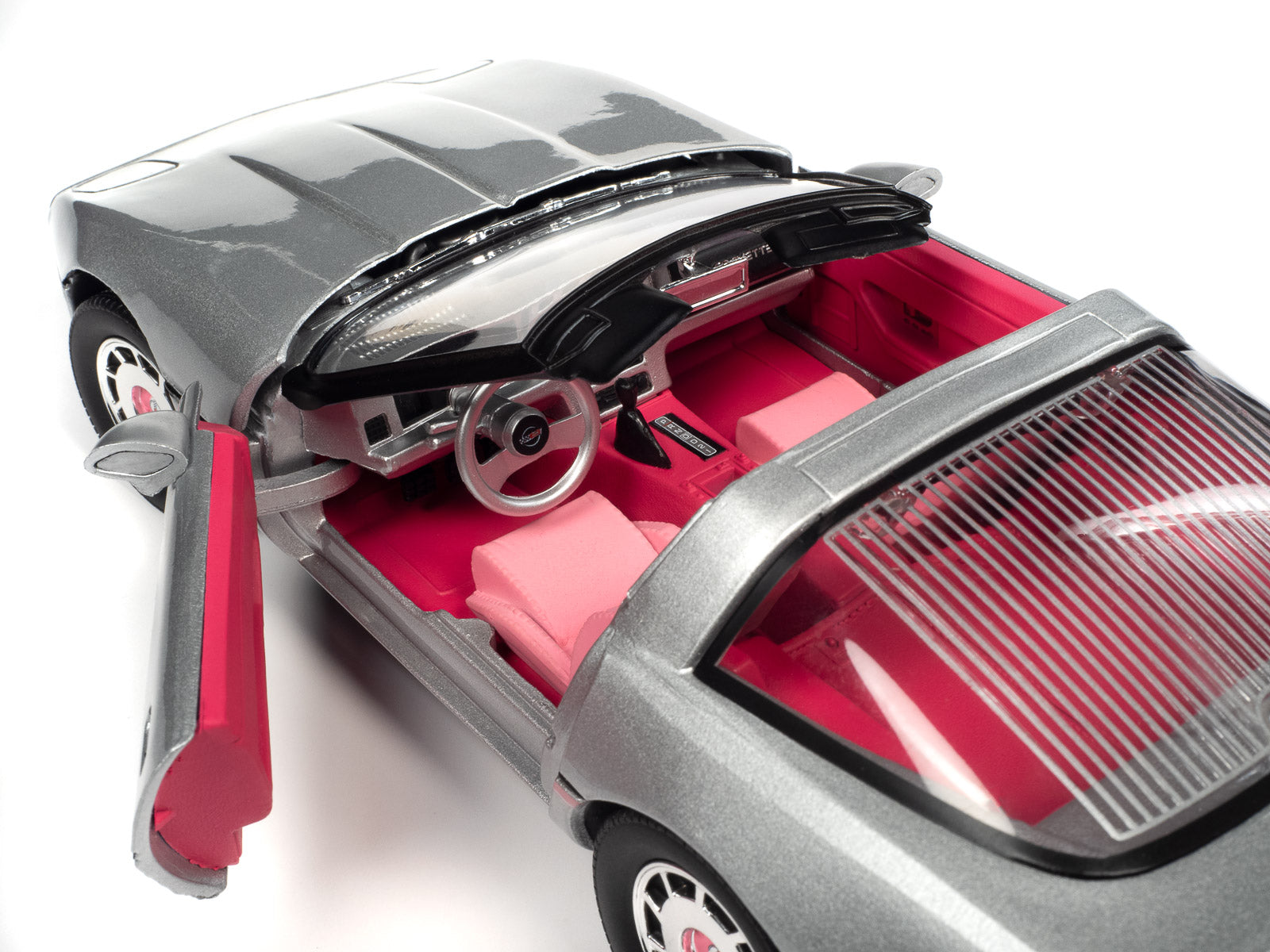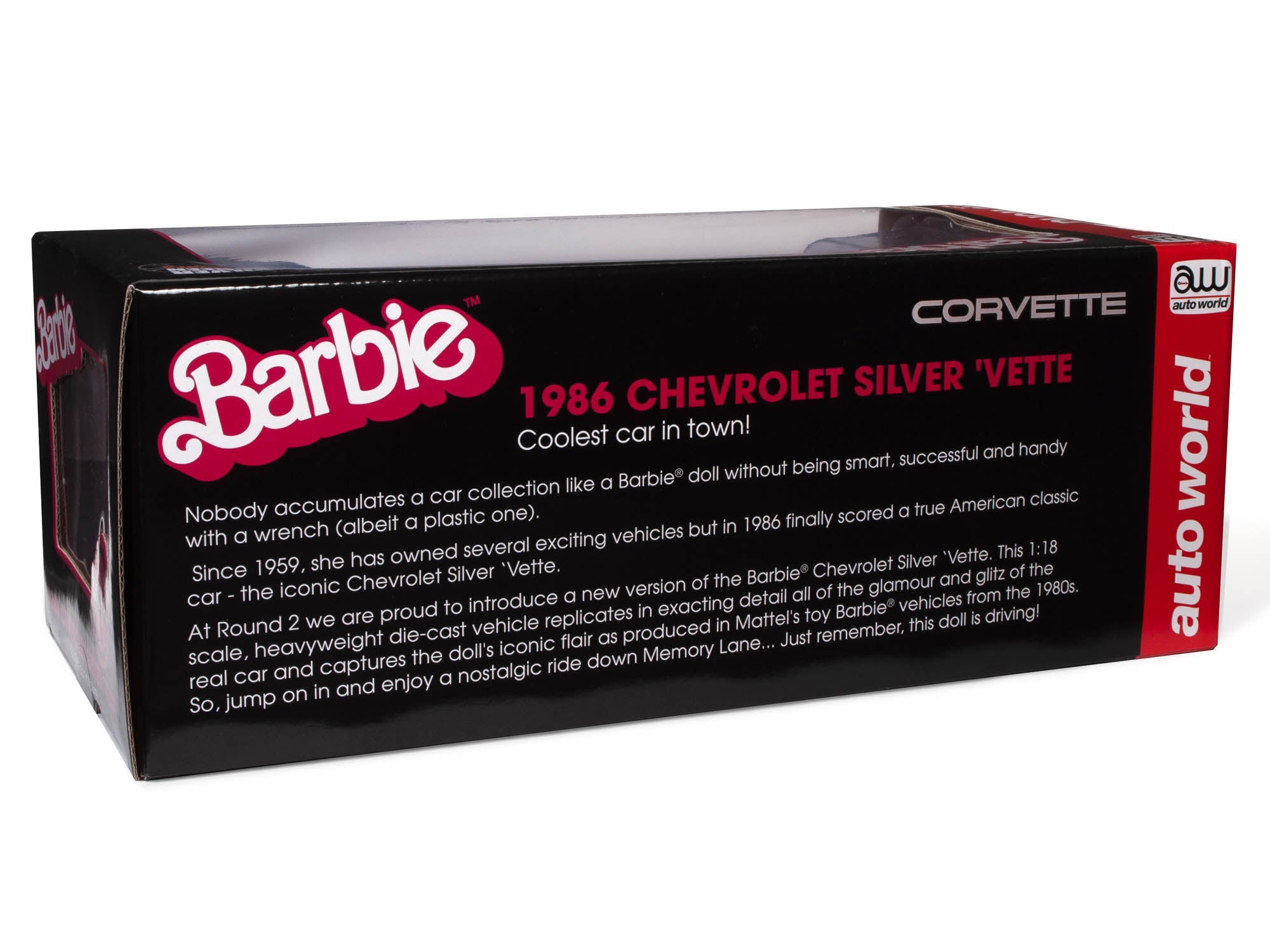 At Round 2 we are proud to introduce a new version of the Barbie Chevrolet Silver ‘Vette. This 1:18 scale, heavyweight die-cast vehicle replicates in exacting detail all of the glamour and glitz of the real car and captures the doll's iconic flair as produced in Mattel's toy Barbie vehicles from the 1980s. So, jump on in and enjoy a nostalgic ride down Memory Lane... Just remember, this doll is driving!