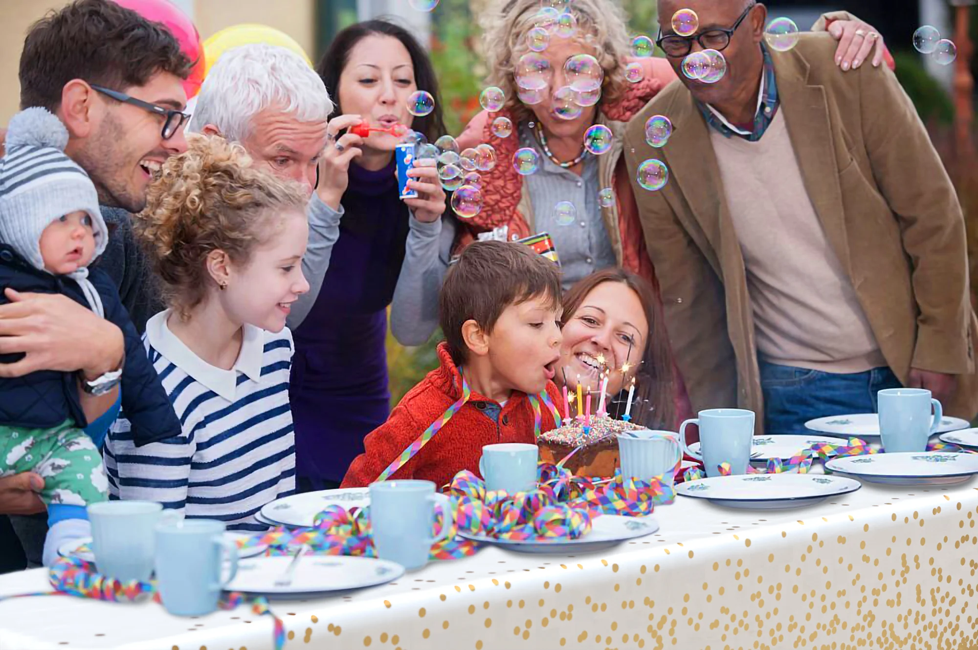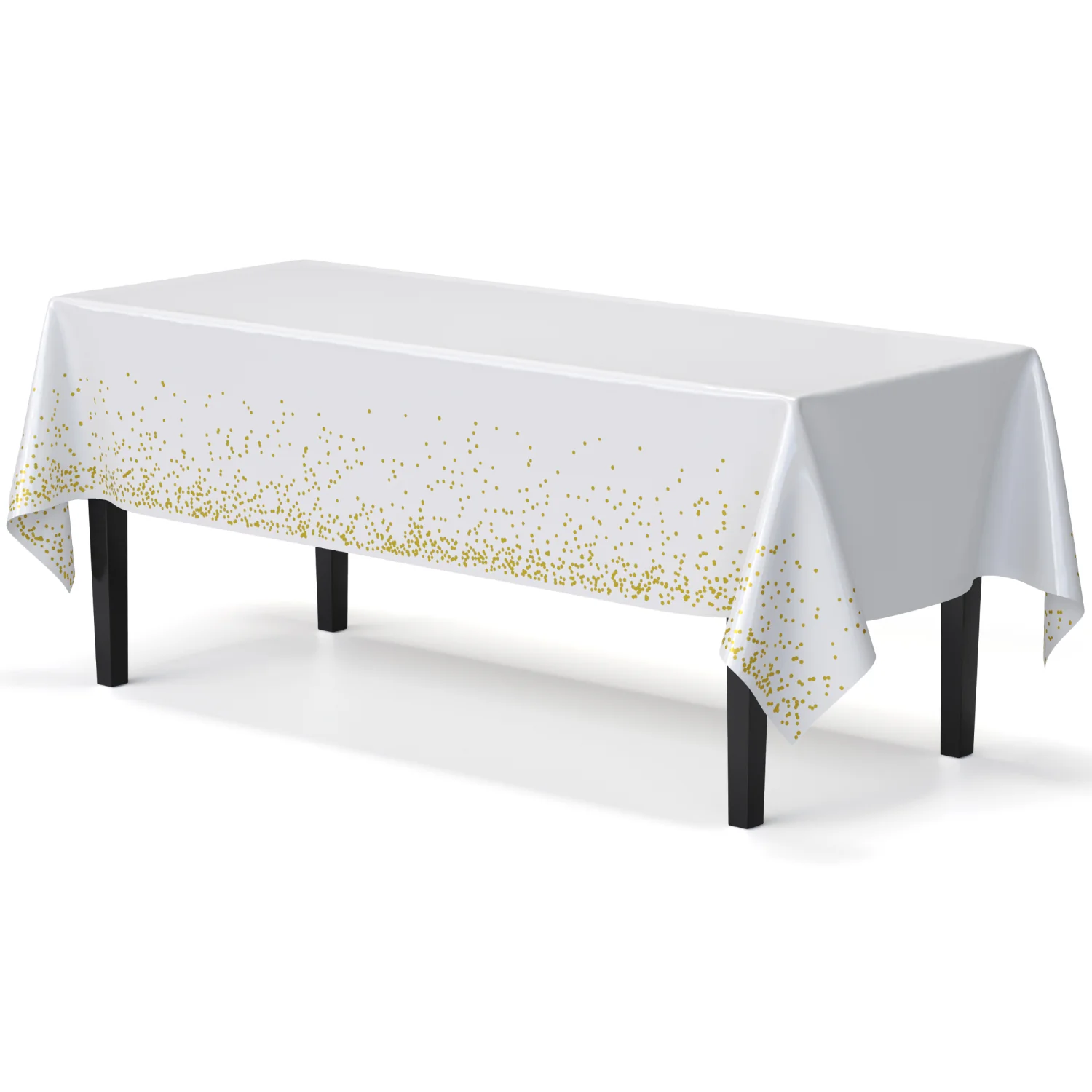 Celebrate Printed Table Cover 54" x 108" White/Gold
