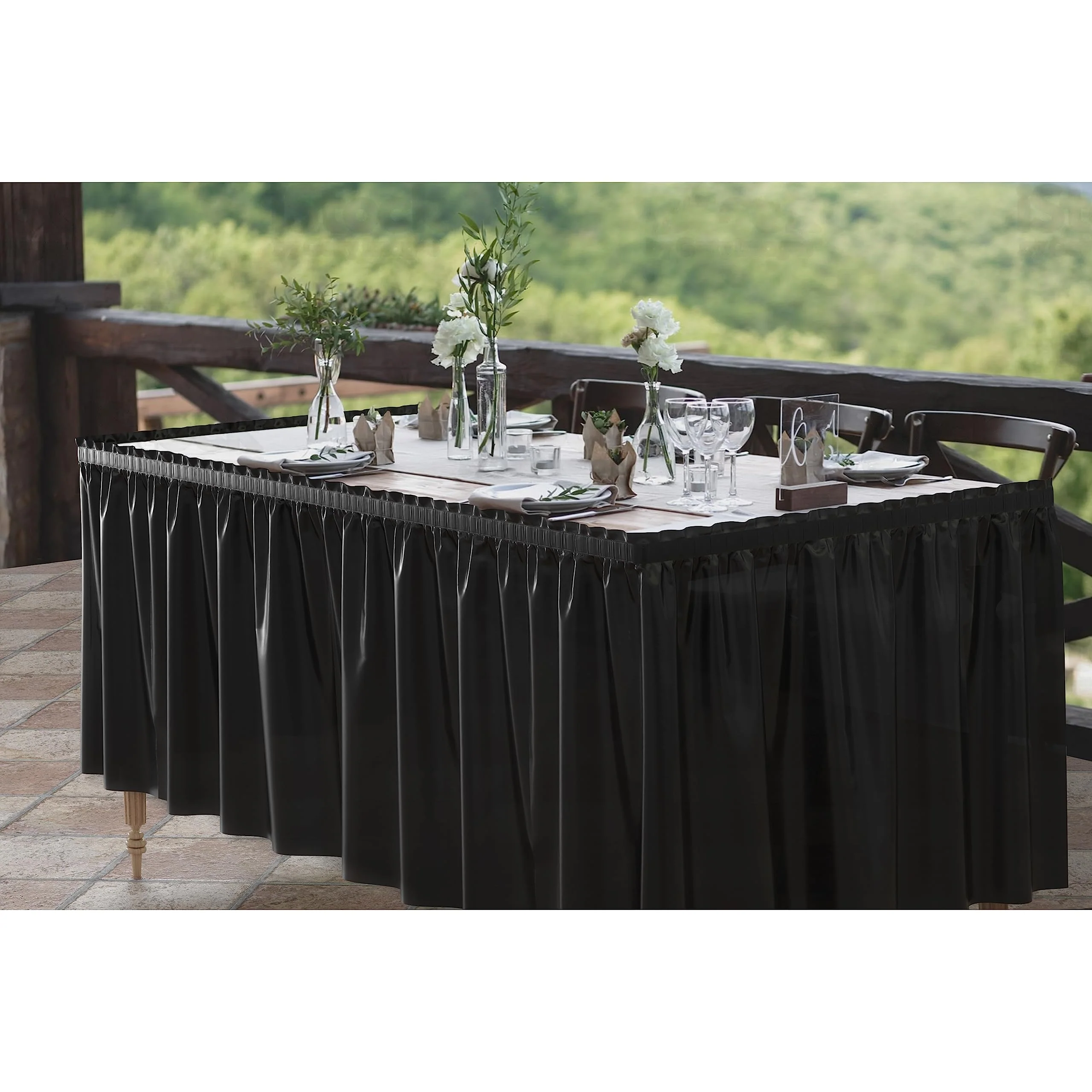 Table skirting is an underrated form of tablescape art. Their graceful presence is stunning, yet understated. They have the ability to transform basic tables into classy ones in just a matter of minutes! These gorgeous plastic table skirts add extra elegance to any table by wrapping around the edge and blocking the table legs from view. Combine with our matching tablecloths to set up an eye catching table and enhance your room. Made from plastic material, our collection of table skirts are certain to meet all of your party needs when it comes to setting up an elegant table. Available in a wide variety of colors, they are the perfect addition to any event from birthday parties to anniversaries, weddings to banquets and even formal events! Keep an eye on bulk wholesales to get your hands on a bunch of quality FDP table skirts for a cheaper price! Your tables are guaranteed to steal the show with these beautiful elegant table skirts. Disposable works! When the party's over, cleanup is easy just roll up our table skirts and dispose of it or save it for your next event.