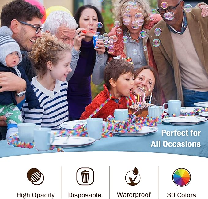 Our rectangle light blue tablecloths that measure 54 in. x 108 in. will instantly elevate your table adding color and style. It suits both people who prefer minimalistic style and glam themed tables. Each style can be achieved through decorating your table with our Combo Packs to dine on picturesque disposable tableware.Made from food grade plastic material, our collection of plastic table covers is certain to meet all of your party needs. Transitioning from one event to another is seamless with these disposable tablecloths. Whether it's a birthday bash, wedding reception, or corporate gathering, these covers fit right in, adding a polished look to your setting. The rectangle shape ensures a perfect fit for standard tables, creating a sleek and uniform appearance. Our collection offers extra high opacity for such an affordable price. They are made to withstand spills and protect your tables from scratches throughout the event.