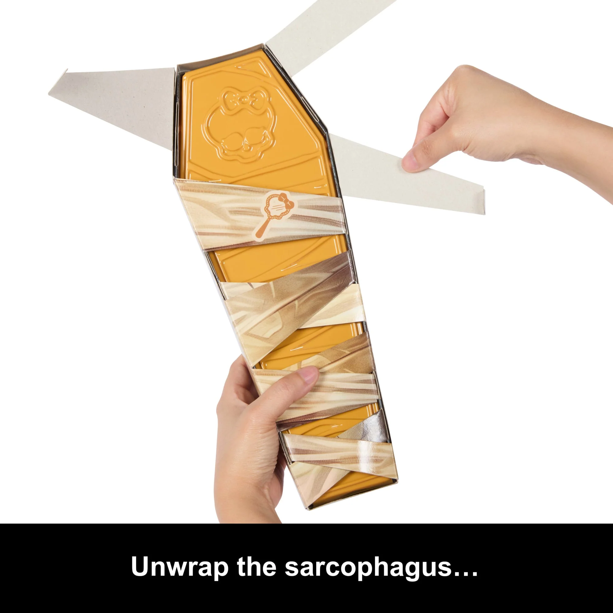The boo crew is under wraps! Monster High Buried Secrets dolls offer an eek-citing unboxing experience with a mystery doll and 5 Cozy Creepover accessories. Undo the mummy wraps to discover which gore-geous ghoul lies inside the sarcophagus packaging -- will it be Cleo De Nile, Draculaura, Frankie Stein, or Clawdeen Wolf? The spooky surprise is half the fun! Then, open the bags inside the sarcophagus to reveal creepover accessories that set the scene for a spooky slumber party! Each sold separately, subject to availability. Characters may vary. Doll cannot stand alone. Colors and decorations may vary.
