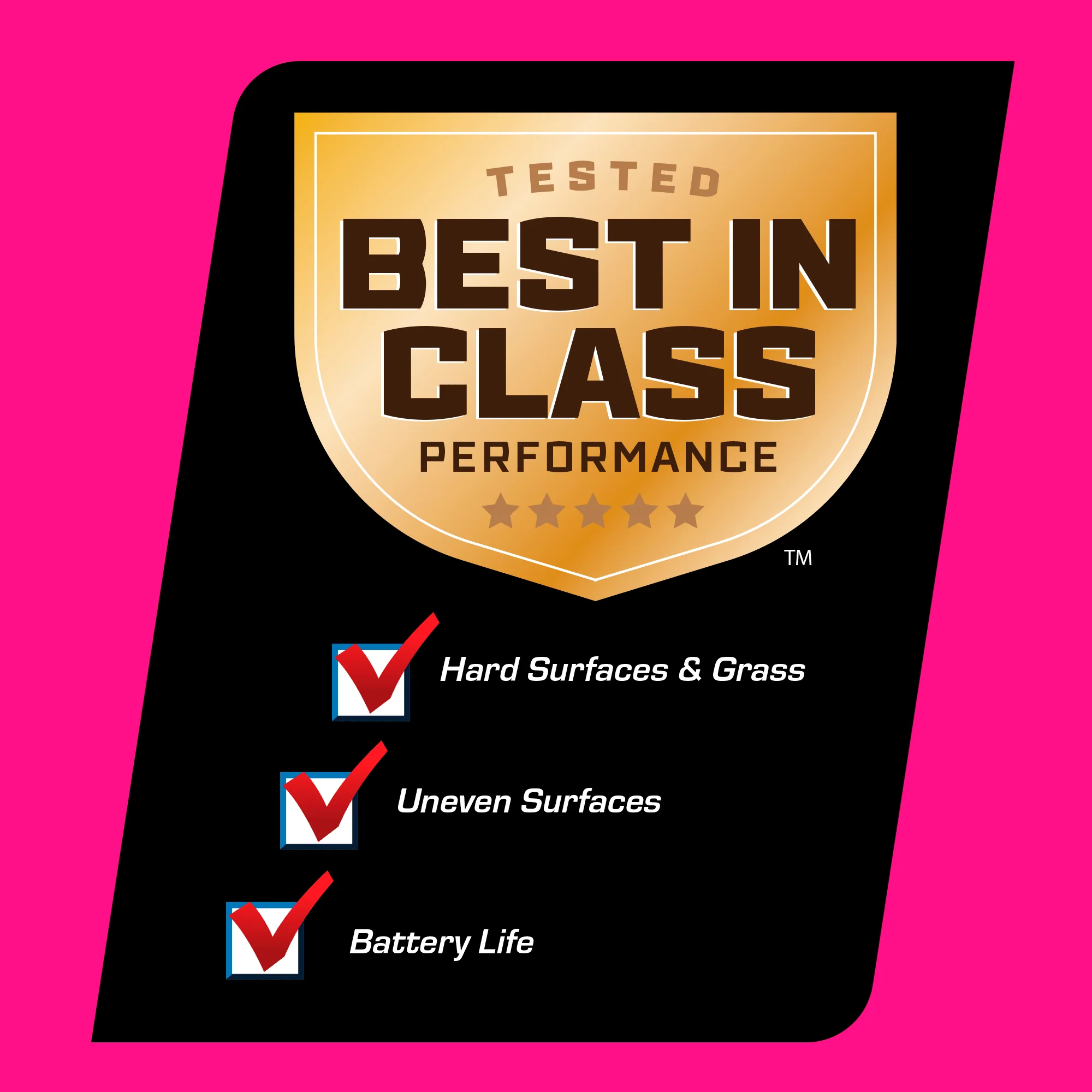 Young Barbie? fans can head out on their own fab adventures with this Power Wheels? Barbie? Jeep? Wrangler ride-on toy from Fisher-Price?. Styled like a real Jeep? Wrangler vehicle, this ride-on toy features fun Barbie? colors and graphics and has a long-lasting rechargeable 6V battery that锟斤拷s best in class for performance on hard surfaces, grass and uneven terrain. Vehicle drives at 2.5 mph in both forward and reverse, plus makes driving sound effects for a realistic 锟斤拷off road锟斤拷 experience. A secret storage compartment lets kids bring their stuff along too!