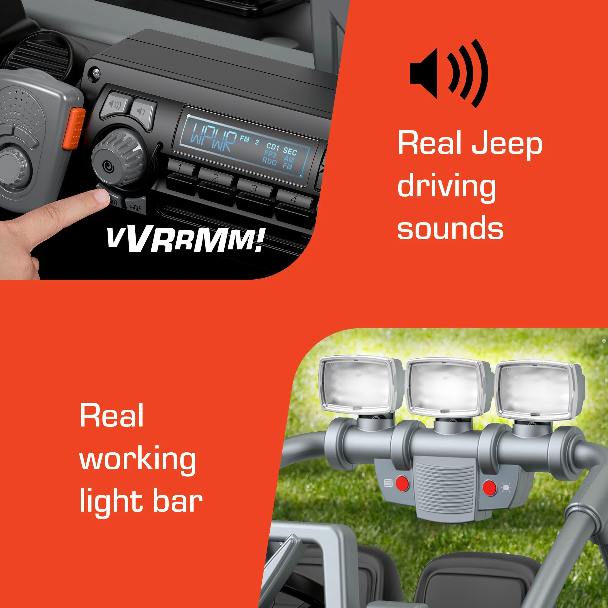 Kids can set off on exciting 锟斤拷off-road锟斤拷 adventures with the Power Wheels? Jeep? Wrangler Willys ride-on toy from Fisher-Price?. This rugged two-seater is styled like a classic Jeep? Wrangler Willys vehicle and comes with a toy shovel. The ride-on toy features a working light bar, makes realistic driving sounds and includes a microphone with a fun voice-changing feature. This battery-powered toy drives in two speeds (forward and reverse) for flexible play on both hard surfaces and grass.