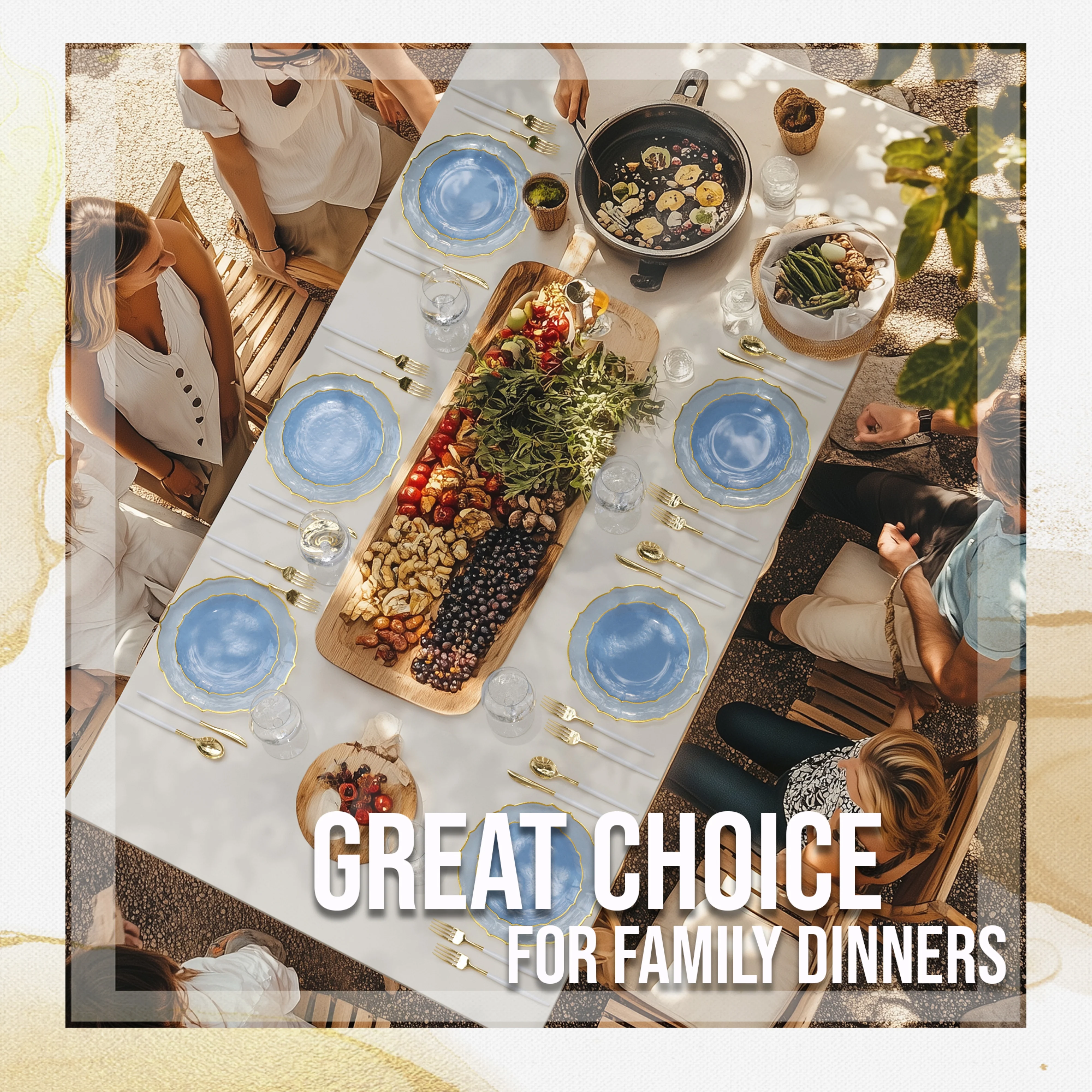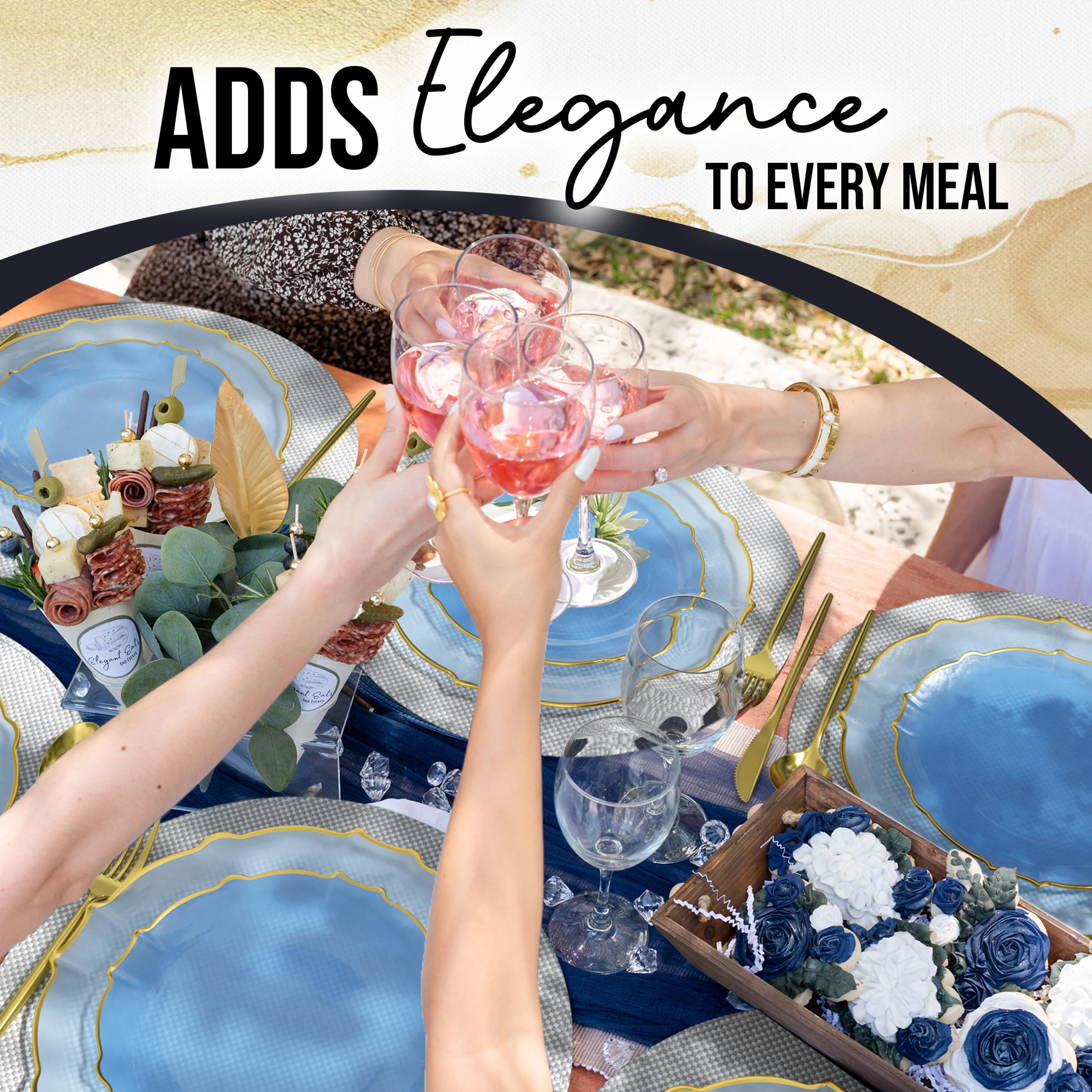 Experience a burst of daring with our Spring Lake/Gold Petal Plates - Combo Pack 20/20! These plates feature a striking combination of spring lake and gold shades, perfect for adding a touch of adventure to your dining experience. Includes 20 small and 20 large plates for all your entertaining needs.